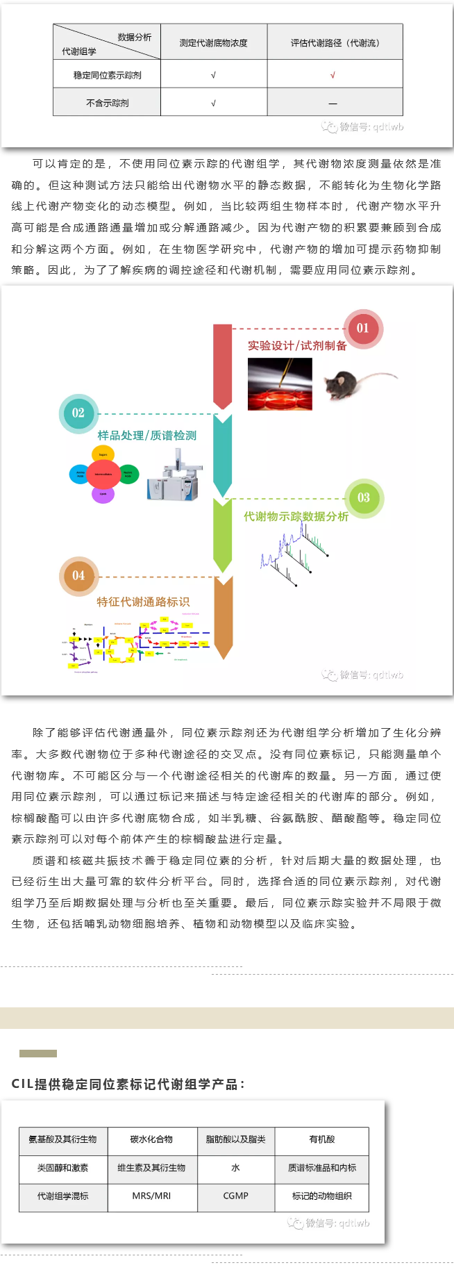 代謝組學(xué)有兩種形式,區(qū)別在于是否使用穩(wěn)定同位素示蹤劑。在沒有示蹤劑的情況下只能測定代謝物濃度,當(dāng)使用穩(wěn)定同位素示蹤劑進行代謝研究時,可以評估代謝物濃度和路徑(即代謝流),后者對新陳代謝的研究更全面。