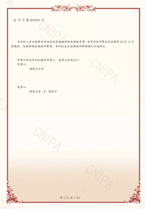 注:ZL 2016 8 0033896.0專利持有人歸屬于諾雷爾公司(Norell, Inc. )