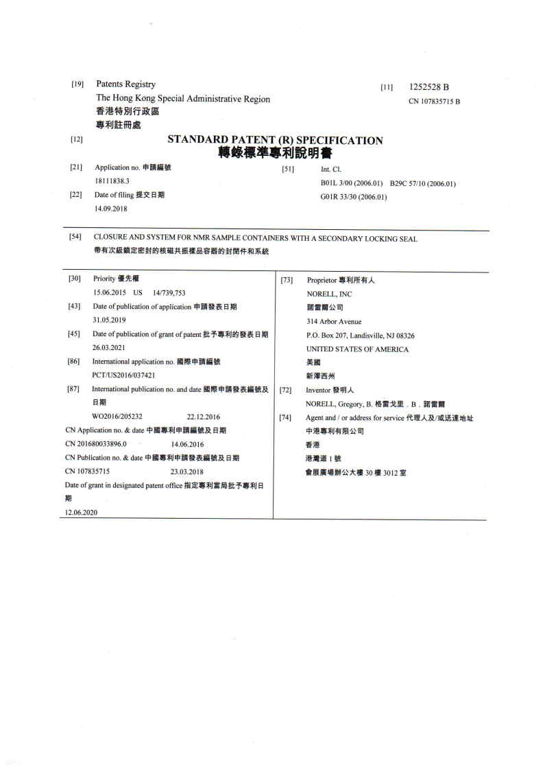 注:專利持有人歸屬于諾雷爾公司(Norell, Inc.)