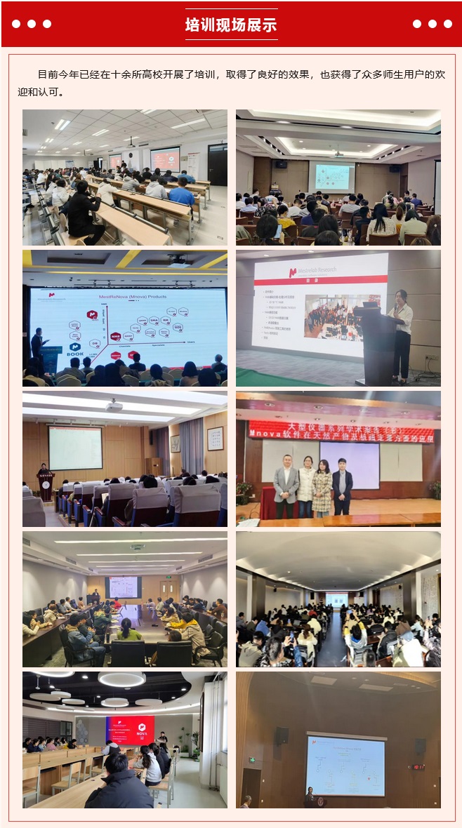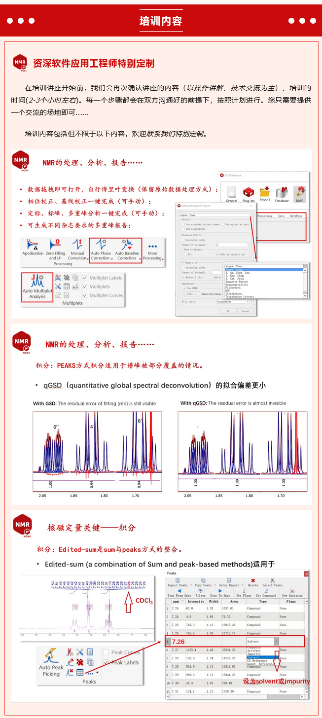本次巡回培訓(xùn)講座,青島騰龍聚焦Mnova軟件“功能介紹/使用操作/問題答疑”等內(nèi)容,由專業(yè)的技術(shù)工程師們?cè)诙嗟赝瑫r(shí)展開,兼顧科研與企業(yè)。無論您在科研院所、還是在企業(yè),都?xì)g迎盡快與我們聯(lián)系,約定具體時(shí)間。我們將竭誠(chéng)以赴,用最專業(yè)的技術(shù)提供最專業(yè)的培訓(xùn)/講座。