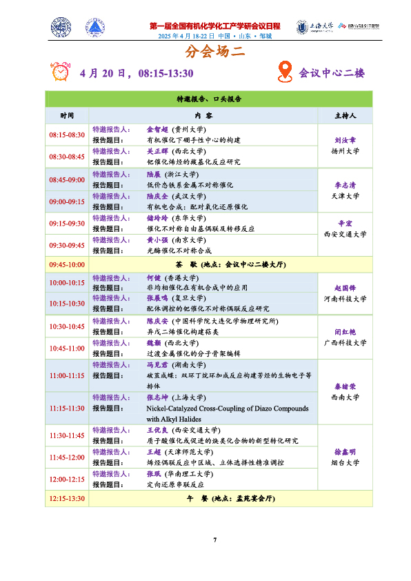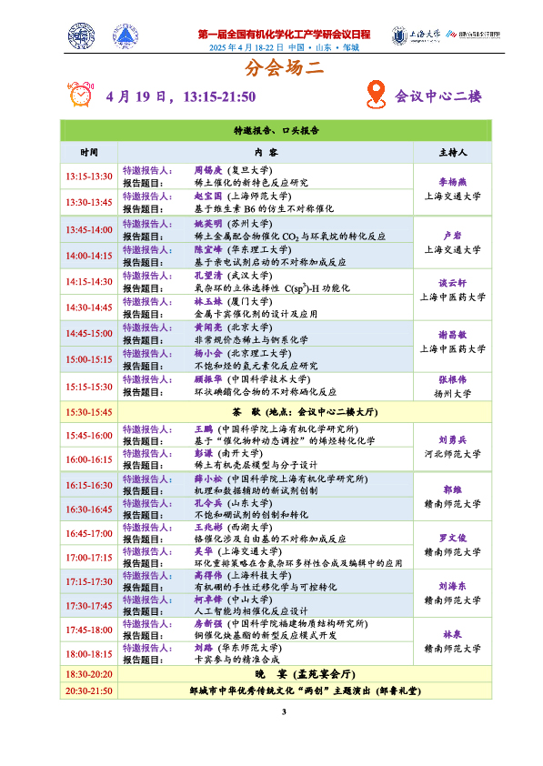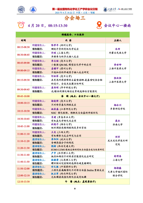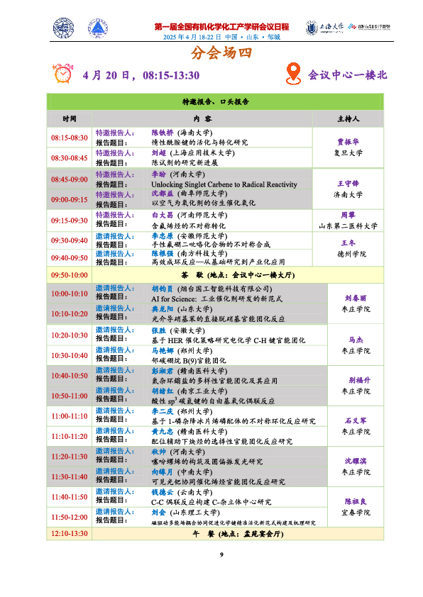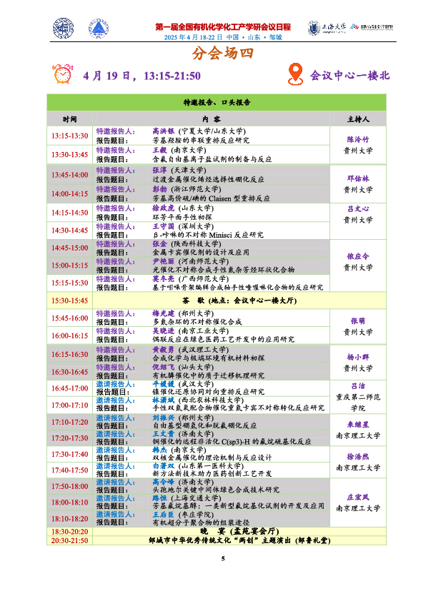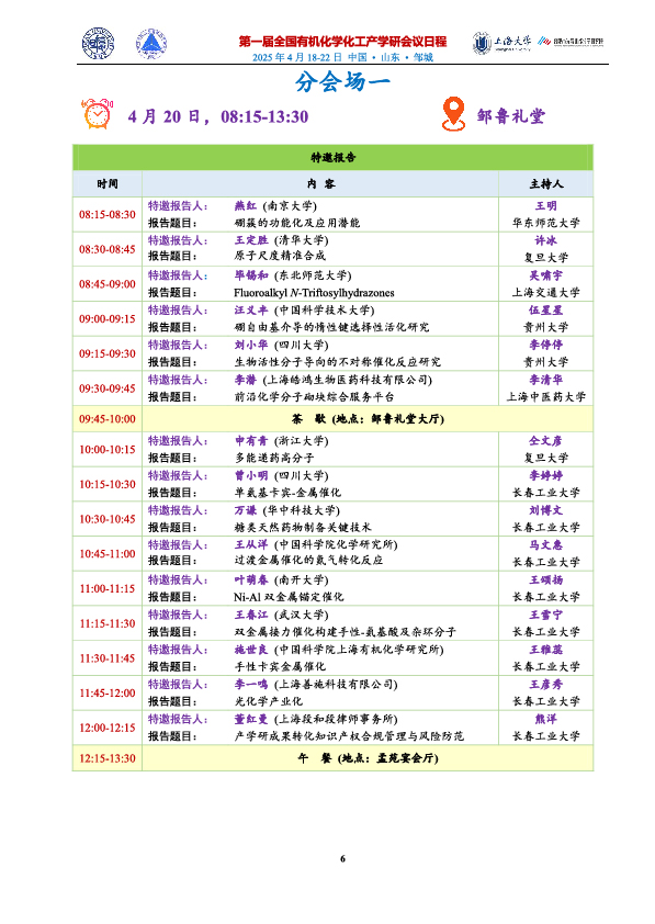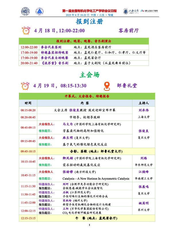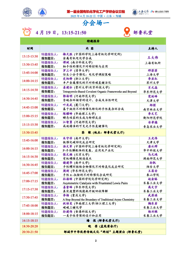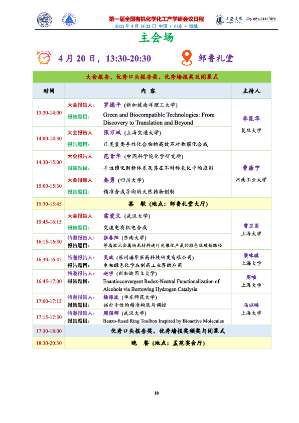第一屆全國有機(jī)化學(xué)化工產(chǎn)學(xué)研會議于2025年4月18日—22日在山東省鄒城市孟苑(孟子故里)成功舉行。本次會議由復(fù)旦大學(xué)、中國科學(xué)院上海有機(jī)化學(xué)研究所主辦,上海大學(xué)、合肥市先導(dǎo)功能分子研究院承辦,曲阜師范大學(xué)、棗莊學(xué)院協(xié)辦。會議集全國有機(jī)化學(xué)化工及相關(guān)領(lǐng)域的知名專家、企業(yè)家、青年學(xué)者等于一堂,討論有機(jī)化學(xué)化工領(lǐng)域最新政策、科學(xué)與技術(shù)進(jìn)展,交流分享最新學(xué)術(shù)成果、科技產(chǎn)業(yè)成果,促進(jìn)有機(jī)化學(xué)化工領(lǐng)域?qū)W術(shù)與工業(yè)界的深度融合與發(fā)展,助力地方化學(xué)化工領(lǐng)域經(jīng)濟(jì)的可持續(xù)發(fā)展。