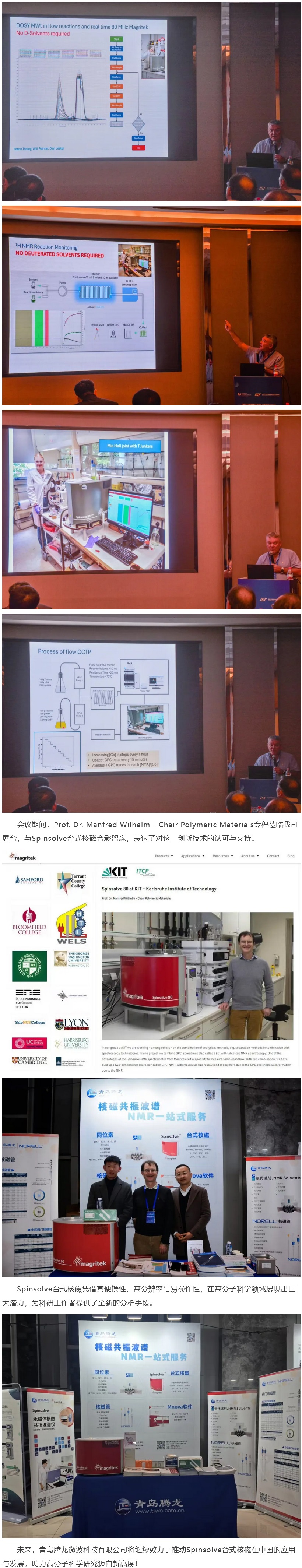 作為Magritek旗下Spinsolve系列臺式核磁的中國總代理,青島騰龍微波科技有限公司攜Spinsolve臺式核磁亮相本次會議,吸引了眾多專家學(xué)者的關(guān)注。值得一提的是,英國University of Warwick的David Haddleton博士在報告中多次提及Spinsolve臺式核磁,并對其性能與應(yīng)用給予了高度評價。