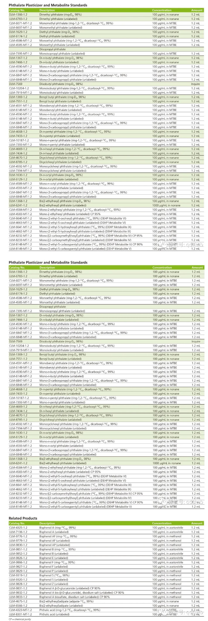 以下是美國劍橋CIL公司提供的同位素標(biāo)記的增塑劑對(duì)照品