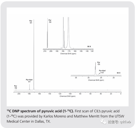 DNP是由未配對電子的極化轉(zhuǎn)移到研究中的原子核而促進的溶解。DNP方法要求樣品在強磁場(如3t)中微波輻照時保持低溫(如<4k)輻照后,樣品用熱加壓溶劑迅速溶解,并轉(zhuǎn)移到核磁共振管或注射注射器中,以便立即進行核磁共振或核磁共振數(shù)據(jù)采集。在微波輻射期間,樣品中必須存在濃度為mM的自由基摻雜劑(例如,“OX63”和“Finland”等三苯基自由基),以便為分子間轉(zhuǎn)移提供所需的核極化。一般來說,可接受的極化水平是通過幾十分鐘到幾個小時的輻照時間來實現(xiàn)的。