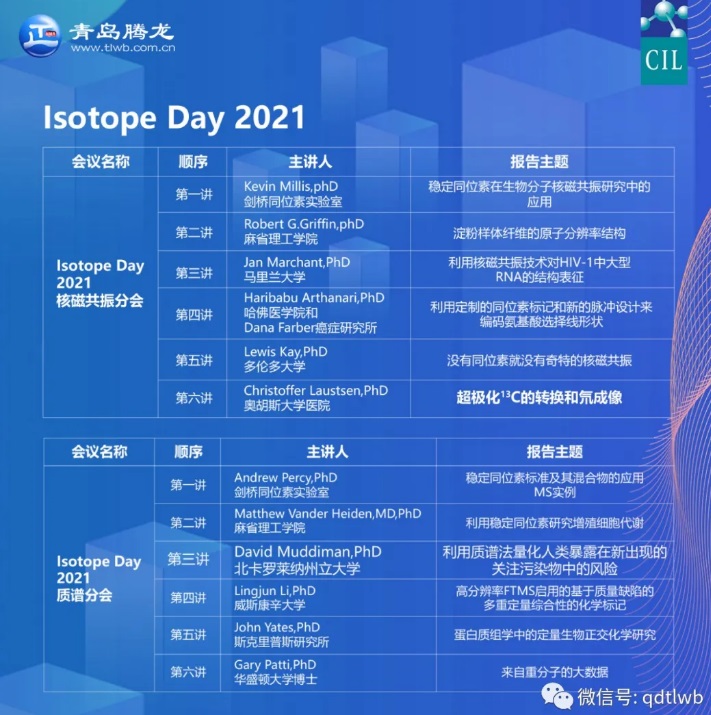 美國劍橋同位素實驗室公司(CIL)主辦的 “Isotope Day 2021”網絡研討會,于北京時間2021年6月2日 周三 21:00 - 6月3日 周四3:00圓滿結束。會議一共邀請到12位同位素應用方面頂級大咖,圍繞核磁共振和質譜兩個分會主題,報告涵蓋:代謝追蹤、定性定量、結構確定與成像。
