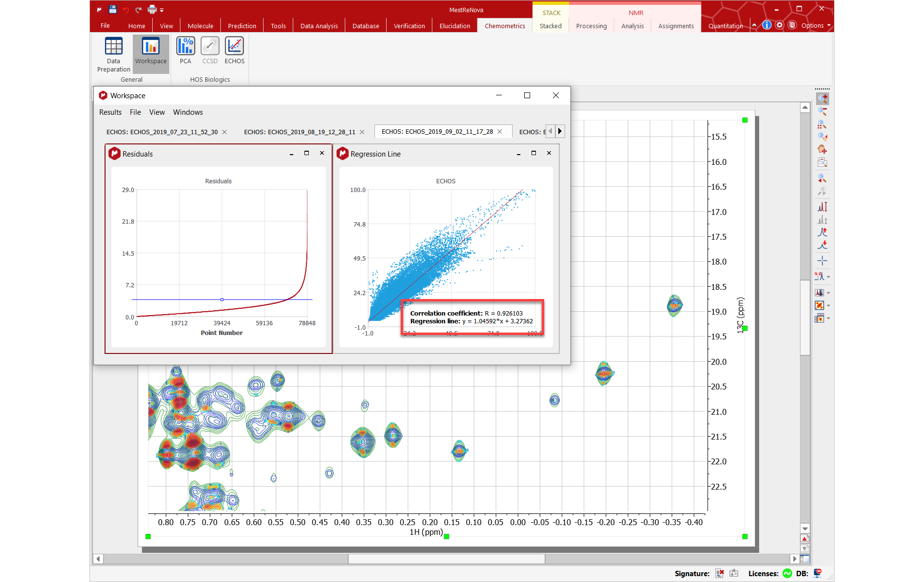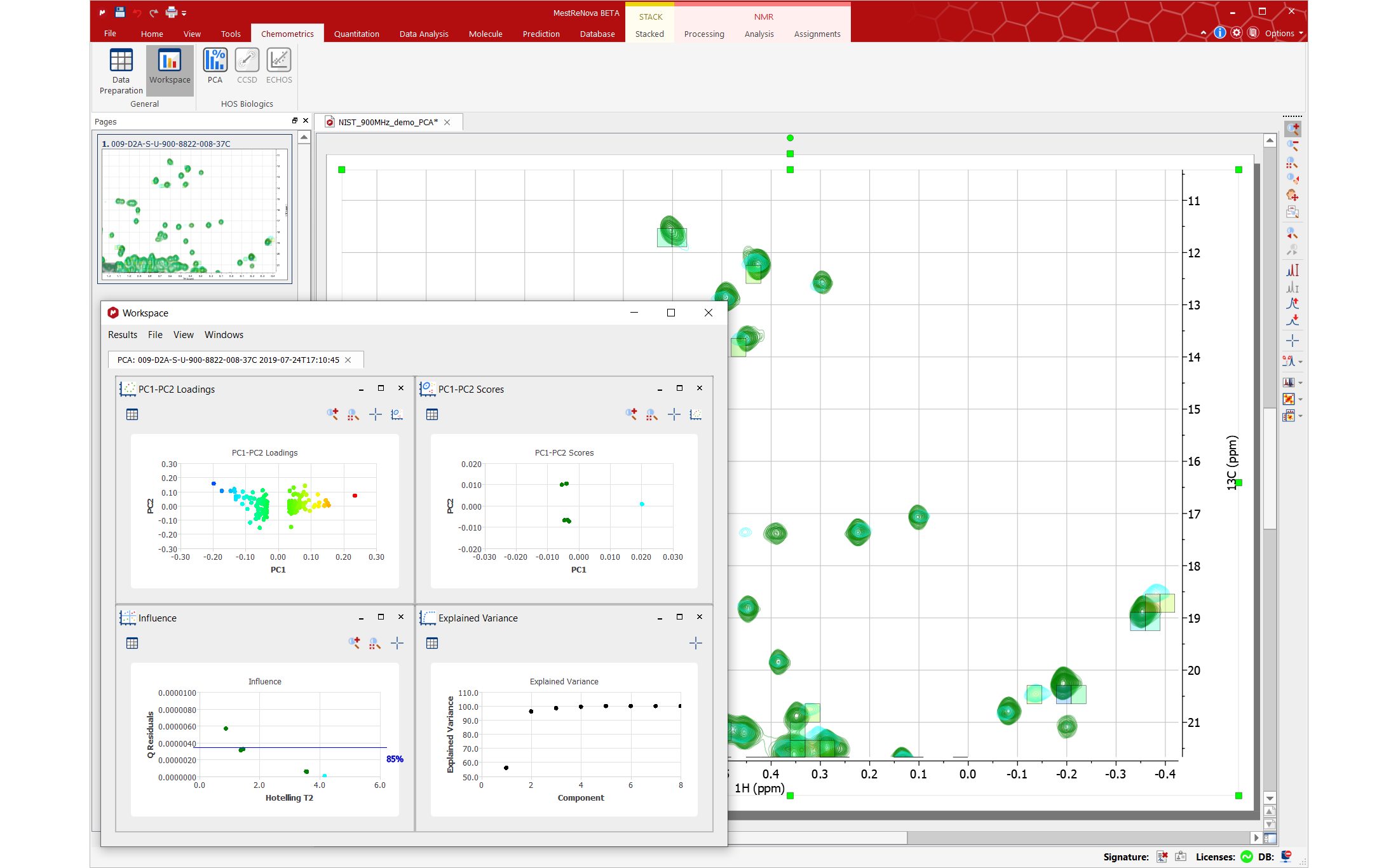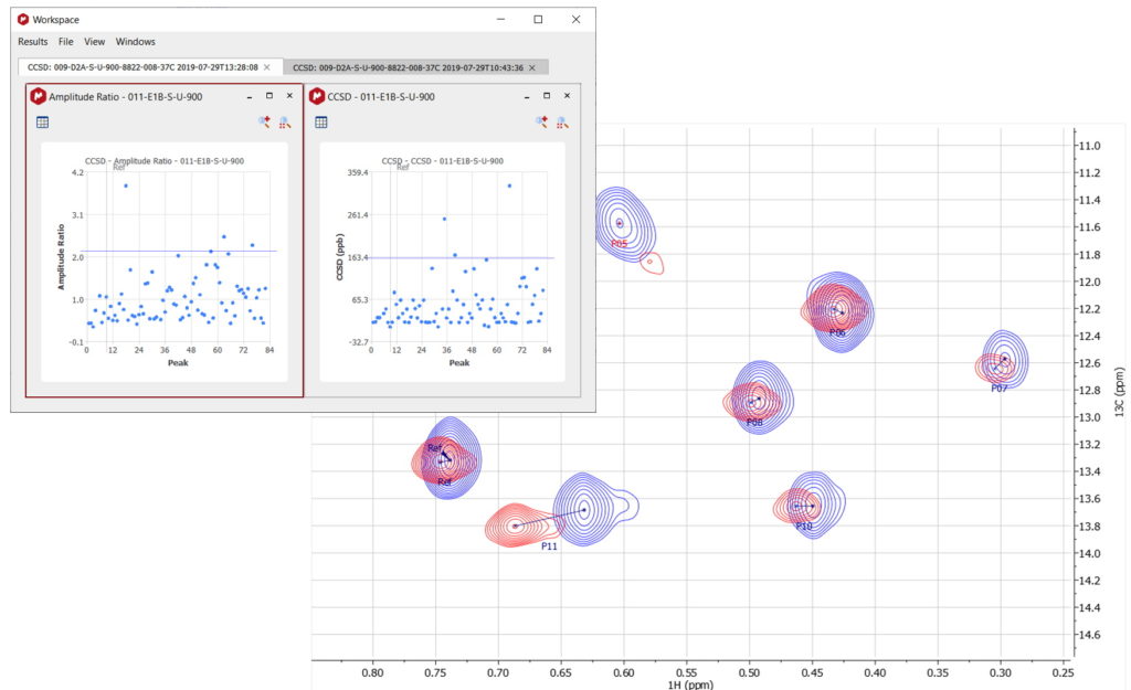 包括幾種已發(fā)表和接受的分析方法: – 主成分分析,PCA – 無監(jiān)督化學(xué)計(jì)量學(xué)– 高階結(jié)構(gòu)的簡單可比性,ECHOS – 波譜差異的簡單表示 – 組合化學(xué)位移差異,CCSD – 代表峰位置位移的數(shù)字 – 1D Profile 使用 1D NMR 譜圖來檢測小的譜圖變化并對評估進(jìn)行統(tǒng)計(jì)分析