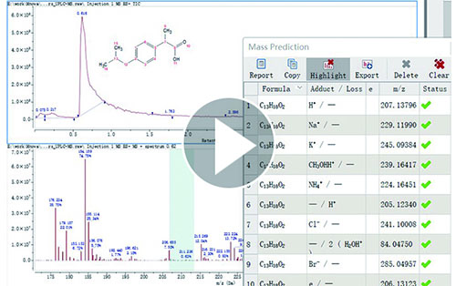 可以打開來自不同儀器(Agilent、Bruker、JEOL、Thermo、Waters)以及mzData或mzXML格式的數(shù)據(jù);自動或手動對TIC、MS、UV/ELSD進行峰積分;根據(jù)TIC峰、是否扣除背景選擇質(zhì)譜,并以centroid或profile模式顯示;可以手動添加質(zhì)譜,也可以在同一文檔中打開NMR和MS數(shù)據(jù),并同時對其進行分析報告。
