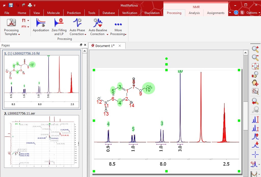 您只需從 NMR 儀器拖放一維和二維數(shù)據(jù),Mnova 即可自動處理譜圖,并為分析做好準(zhǔn)備。