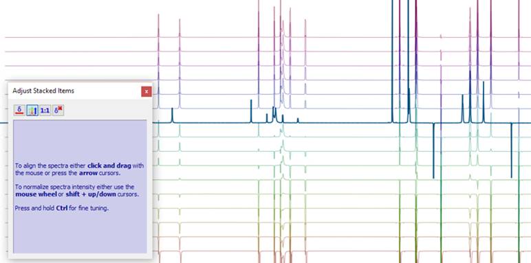 化學(xué)家想要同時處理多個譜圖的原因有很多,而Mnova NMR使這一過程變得非常簡單。無論您是在為給定樣品處理一組1D和2D NMR譜圖,還是想要比較幾個1D(可能是實驗性的或預(yù)測的,或者在不同濃度或不同樣品中獲得的1D)甚至幾個2D(例如,通過比較HSQC和HMBC來確定結(jié)構(gòu))譜圖,Mnova NMR允許您在同一文檔中可視化多個譜圖并一起進(jìn)行分析。 在Mnova中只需單擊一下即可將一系列譜圖組合在一起,并以不同的方式(stacked, superimposed, etc.)顯示。