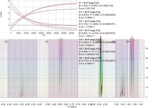Mnova結(jié)合了“數(shù)據(jù)分析”功能,用于分析一系列1D NMR實驗。它具有處理多個系列的能力,例如,可以分析同一實驗中多個共振的衰減,或滴定期間的一系列峰值偏移。