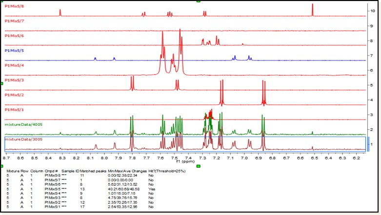 模式識別算法map實驗數(shù)據(jù) 可以處理多種篩選實驗的數(shù)據(jù):STD、WaterLOGSY、T1rho、CPMG實驗 利用去卷積的方式進行峰值拾取(對于弱信號也較為有效) Result viewer可以快速查看活性化合物 可以將分析數(shù)據(jù)導(dǎo)出用于統(tǒng)計 |