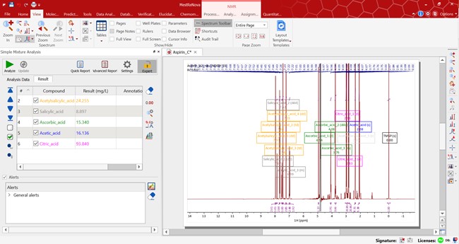 SMA可以自動(dòng)創(chuàng)建濃度和純度測(cè)定的標(biāo)準(zhǔn)方程式 創(chuàng)建您自己的定制的目標(biāo)混合物分析實(shí)驗(yàn) 可以使用多種Mnova積分方法,包括強(qiáng)大的qGSD 手動(dòng)檢查化合物的組分,并輕松更改計(jì)算所用的多重峰 與潛在組分的數(shù)據(jù)庫(kù)交互,以“即時(shí)”構(gòu)建特定于樣本的分析 可以對(duì)SMA工作流實(shí)現(xiàn)批處理或?qū)崟r(shí)處理(Mgears SMA) |