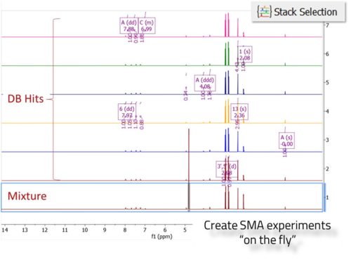 從您的Mnova DB導(dǎo)入化學(xué)位移范圍、質(zhì)子數(shù)和分子量,點(diǎn)擊幾個(gè)按鈕即可構(gòu)建SMA實(shí)驗(yàn)!