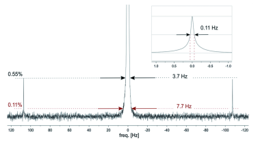 Ultra型號(hào)的線寬足夠窄,能極大的衰減溶劑峰,將其限制在小于0.2 ppm的區(qū)域內(nèi)。 |